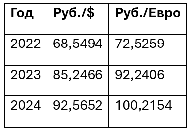Если компания готовит отчетность только в иностранной валюте, то для пересчета в рубли показателей «Выручка/Доход», «Прибыли» («Убытки») EBITDA использовались средневзвешенные курсы иностранной валюты за год:
